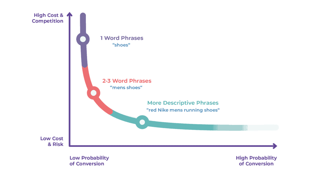 Long tail key words have a high probability of conversion despite fewer impressions, they are cheaper with a greater return but they are very specific.