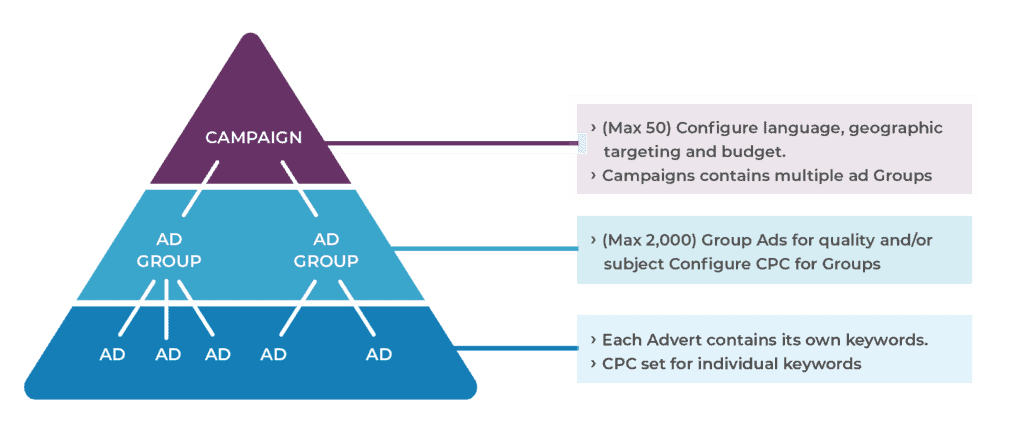 The starting point for SEM is an advert or a group of adverts or even bigger campaigns. Ads could be run one at a time or you may choose to run a series of ads with slightly different keywords or copy. Perhaps you want to specify the kind of term you would like to drive people to your site with.