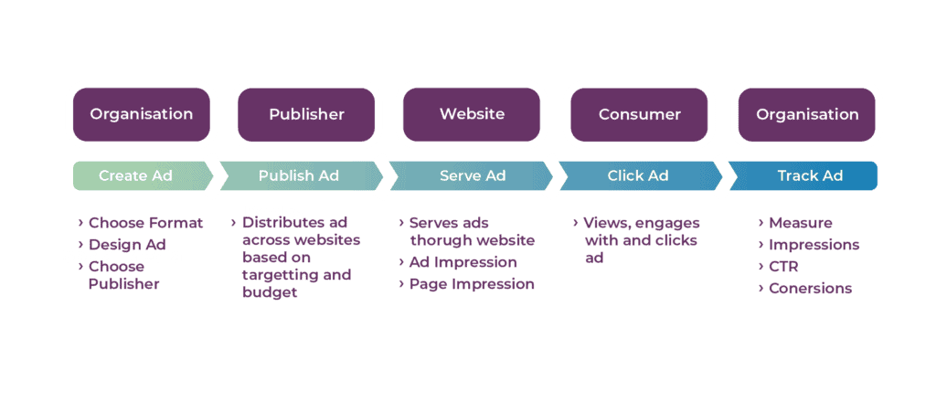 The flow of Search Engine Marketing from the creation of the advertisement to the results are detailed below as well as the actions that need to be followed. The mechanics of digital display and the various stakeholders are included below.