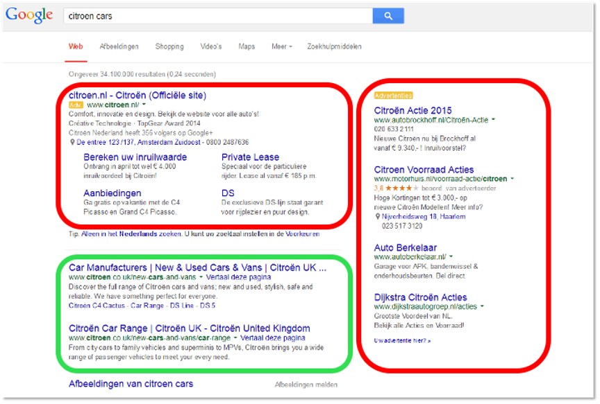 In the image above, the green sections of Google’s Search Engine Response Page (SERP) are organic search whereas the red sections are the paid responses. Click here for a video explainer.