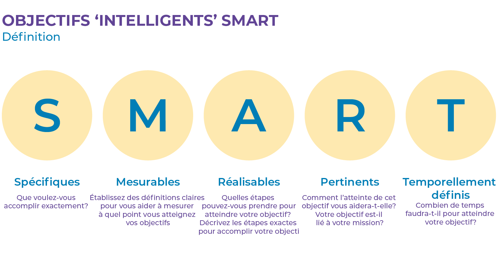 Cette unité vous présentera la manière SMART de fixer des objectifs: une méthode qui peut vous aider à clarifier vos idées, à concentrer vos efforts et à utiliser votre temps et vos ressources de manière productive. Elle vous encouragera à réfléchir à vos objectifs de manière spécifique et ciblée et vous présentera quelques exemples utiles.