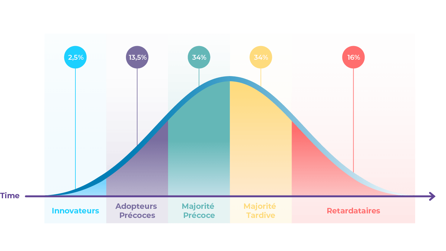 Une tentative de persuasion pour changer une attitude (croyance) ou un comportement ne touchera pas toute la communauté de la même façon. Certaines personnes seront promptes au changement, certaines seront plus lentes et auront besoin de plusieurs exemples de la nouvelle idée, tandis que d’autres seront très difficiles à convaincre ou bien ne changeront jamais.