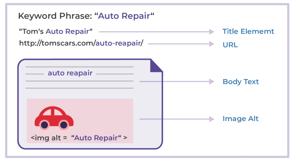 In the section above, we looked at keywords as a broad topic. In this section we put those keywords to work. It is important to include the most relevant keywords in the content, meta tags and site supports of your site. This way your audience can find you. In the case of keywords, your audience are using these terms to find content that is relevant to them. Using keywords means that your site becomes more visible to those you wish to reach. You can see a visual example below on keyword placement in an article.